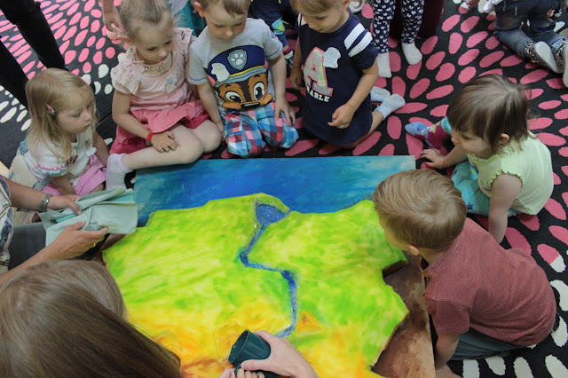 Podczas czwartkowego spotkania gościliśmy panią Agnieszkę Mogielnicką - Zagłobę, która przeczytała dzieciom autorską bajkę "Stary Mądry Balon". Dzieci, jako misie podróżowały balonem i poznawały Polskę, m.in. góry, morze, rzekę Wisłę. Wzięły też udział w eksperymencie, z którego dowiedziały się, że rzeka wypływa ze źródła, płynie korytem i wpada albo do innej rzeki, albo do morza. Ważnym przesłaniem bajki jest to, że kiedy współpracujemy z innymi, razem możemy osiągnąć więcej niż w pojedynkę. Najmłodszym bajka bardzo się podobała, jak również ilustracje, a już zwłaszcza to, że mogli dotknąć makietę Polski. Serdecznie dziękujemy pani Agnieszce, że przedstawiła nam swoją bajkę.