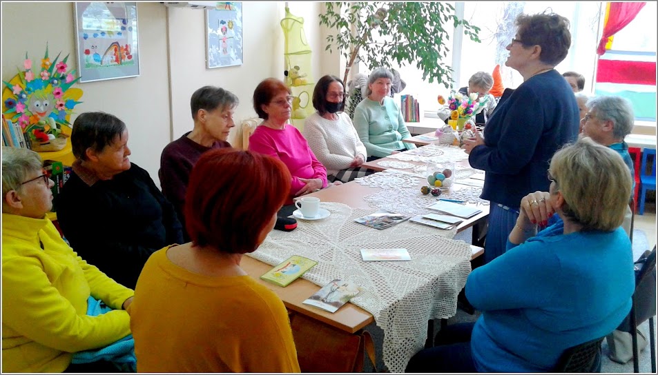 Polska tradycja Świąt Wielkiej Nocy jest niezwykle bogata, silna i zakorzeniona w świecie symboli.  Symbole wielkanocne sięgają wielu wieków wstecz. Nierozerwalnie złączona jest z dawnymi obrzędami wiosennymi oraz zwyczajami ludowymi. Dziś podczas spotkania z cyklu  - "Lubimy poniedziałki" gościliśmy Panią Łucję, która pasjonuje się wykonywaniem prac szydełkowych, gobelinów oraz ozdób i dekoracji związanych ze świętami wielkanocnymi, a także bierze udział w Targach Twórczości Artystycznej. Pani Łucja nie tylko zaprezentowała swoje rękodzieła, ale również niezwykle interesująco opowiedziała o tradycjach i zwyczajach wielkanocnych.